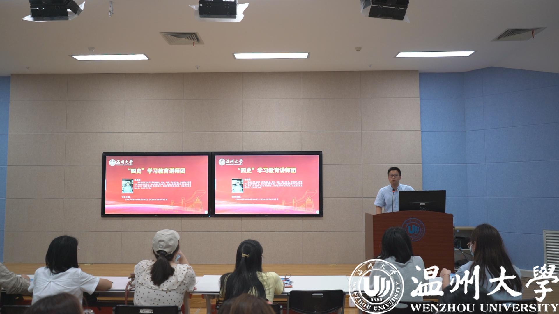 为深入学习贯彻习近平新时代中国特色社会主义思想,围绕立德树人,扎实推动“党史、新中国史、改革开放史、社会主义发展史”学习教育,发挥学校人文社科人才汇聚的优势,学校组织相关专家成立了“四史”学习教育讲师团。讲师团精心准备了《近代温州的红色基因》《解读长征与长征精神》《重温抗战与抗战精神》《学党史,明初心,知使命》《温州改革开放史》《融通‘四史’,深入理解中国道路与中国共产党》等系列“四史”金课,在全校上下掀起开展“四史”学习教育的热潮。