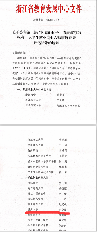 年轻需要精彩,青春需要创业。近日,由浙江省教育发展中心主办的第三届“闪亮的日子—青春该有的模样” 大学生就业创业人物事迹评选结果公布,日本a片 机电工程学院2019届硕士毕业生李小刚荣获“大学生创业典型人物”称号。