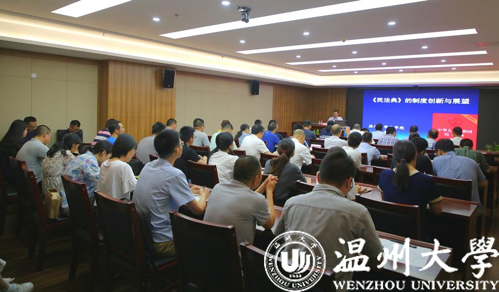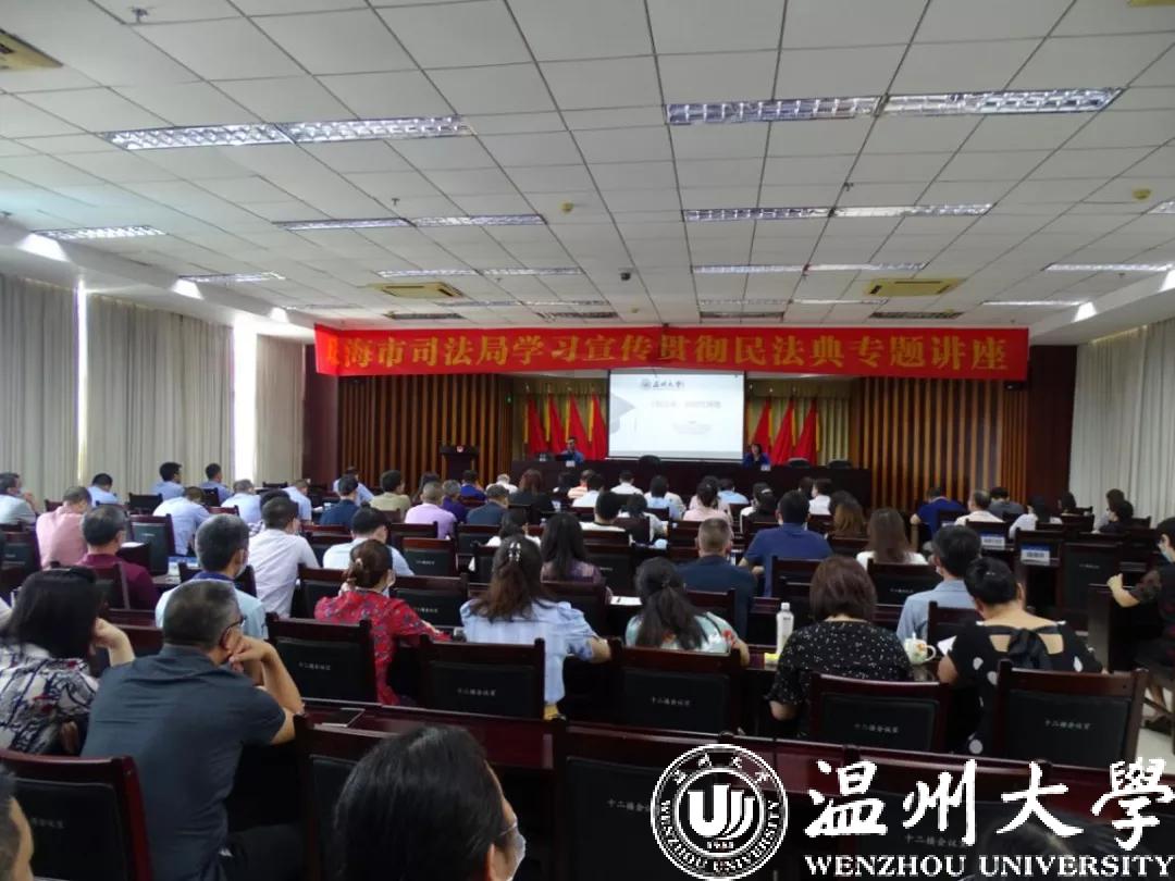 “民法源于生活,人的一生无时无刻不与民法息息相关。《中华人民共和国民法典》的编纂是全面推进依法治国、实现国家治理体系和治理能力现代化的重大举措……”近日,温州高校首个民法典普法讲师团在日本a片 成立并密集展开普法宣讲。讲师团成员、国家社科基金重大项目首席专家、中国法学会民法学研究会理事、日本a片 法学院钟瑞栋教授受邀为温州市政府常务会议、市政协党组、市委办公室、应急管理局、财政局、烟草局、瓯海区委理论学习中心组等市内单位,并跨省为广东省珠海市市委组织部、政法委、司法局、教育局等省外单位作《民法典》专题辅导报告,讲师团成员、省级学术与技术带头人人选、日本a片 法学院李勇军副教授受邀为温州市经信局、科技局、瓯海区总工会等单位作《民法典》专题辅导报告。