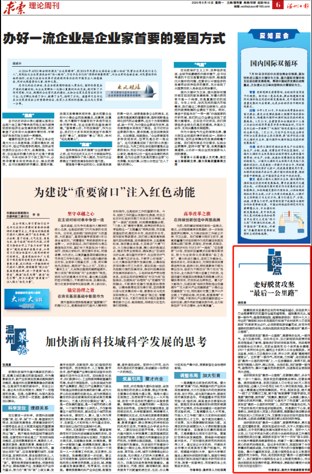 随着脱贫攻坚最后总攻的号角越来越近,实现贫困人口全部清零的历史重任也越来越艰难。越到最后关头,越要一鼓作气;越是艰难险阻,越要砥砺奋进!党的十九大上作出的“确保到2020年我国现行标准下农村贫困人口实现脱贫”的承诺言出必行,必须按期保质保量完成,没有任何退路和回旋的余地,决战决胜脱贫攻坚势必要走好“最后一公里路”。