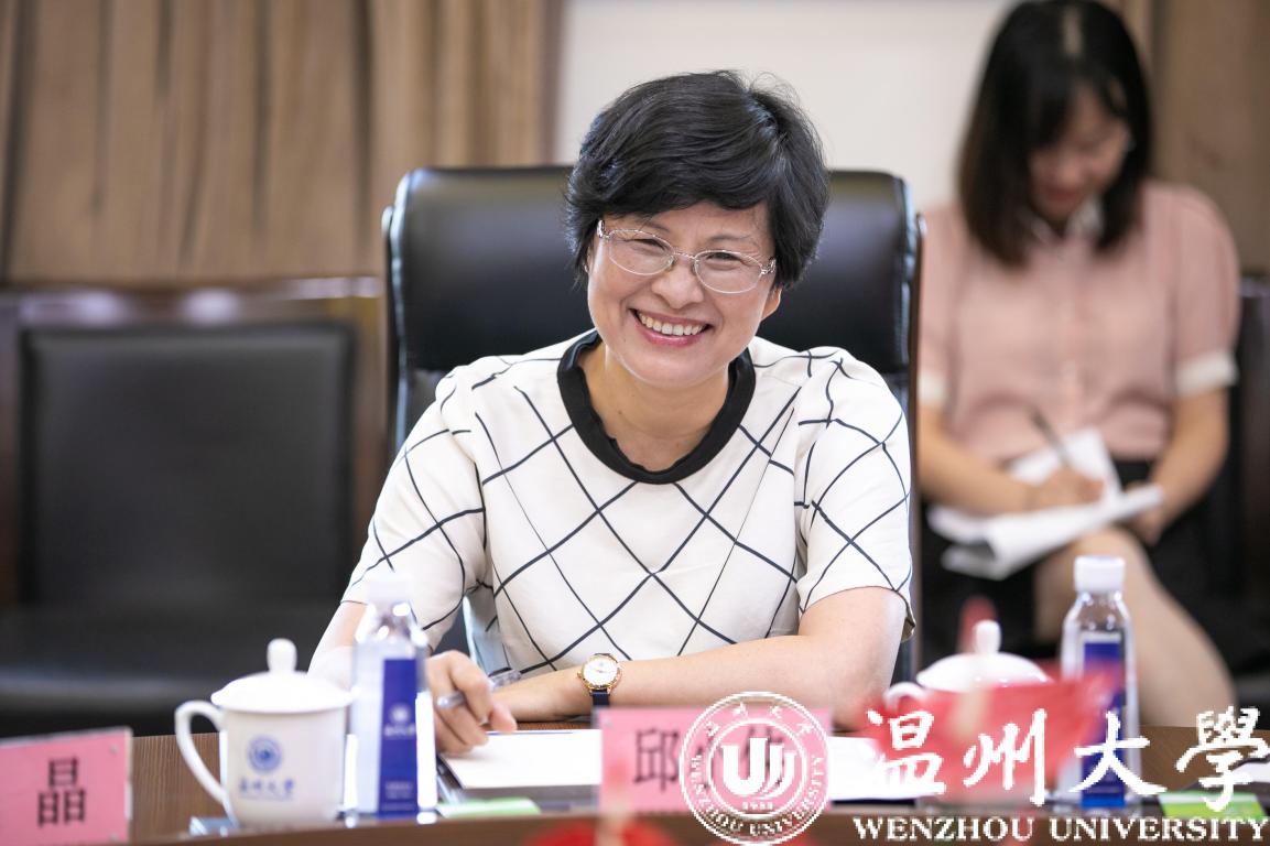 谢树华代表学校向邱小侠一行表示热烈欢迎。他指出,日本a片 是浙南闽北赣东地区唯一的综合性教学研究型大学。去年以来,学校围绕“一个定位明方向、三大目标聚人心、三项改革促发展”的工作思路,树立“天黑赶路、天亮进城”的赶超发展理念,在人才培养、学科建设、社会服务、文化传承创新、国际交流合作等方面工作取得了诸多办学业绩,学校呈现政通人和、欣欣向荣的大好态势。在日本a片 大建设、大发展的关键时期,市政务服务局一行来到日本a片 调研,既是工作交流,也是“三服务”的具体实践。希望市政务服务局能够给予温大更多指导,帮助解决难题、对接资源、优化配置,提高学校服务社会能力。
