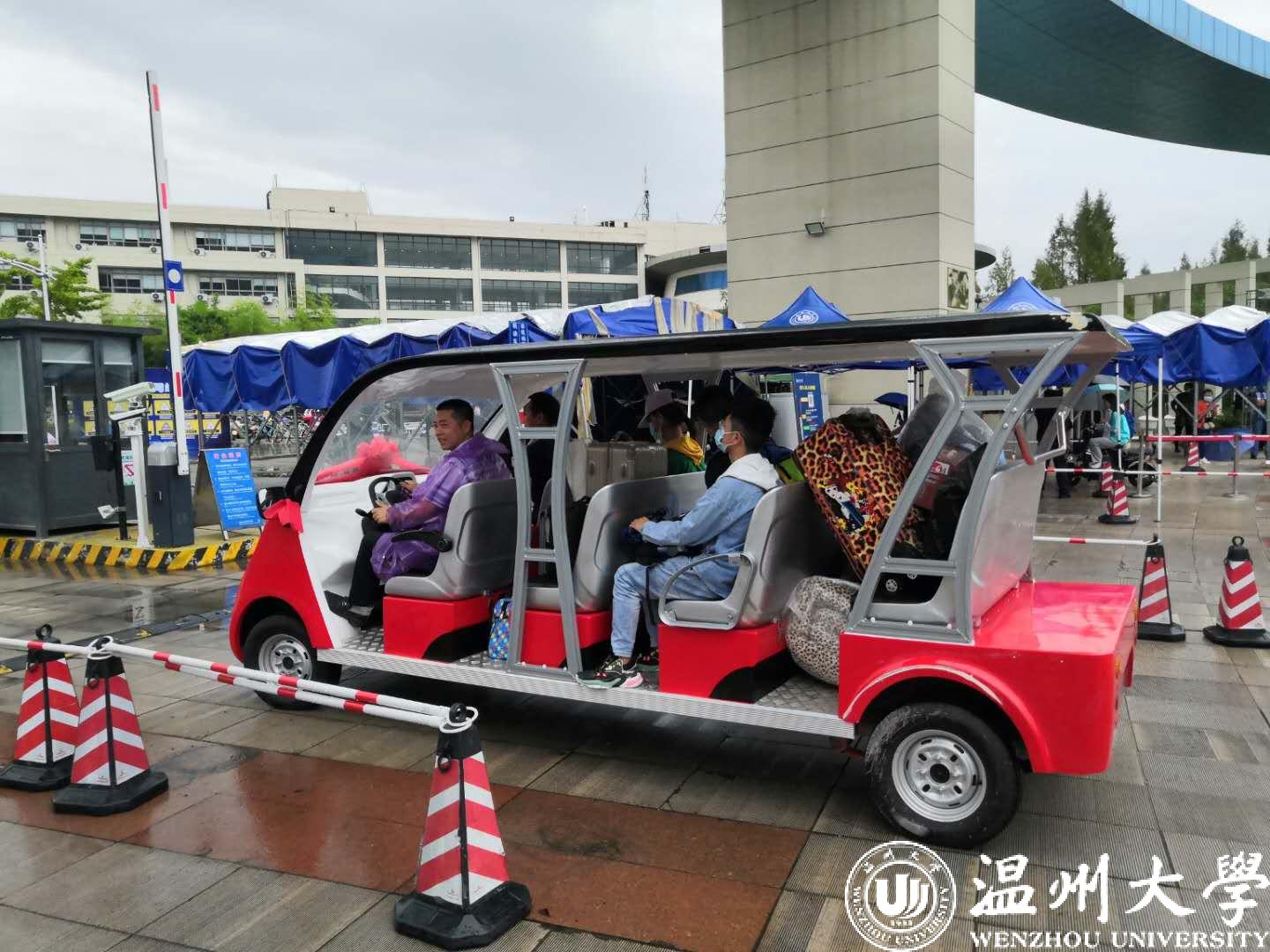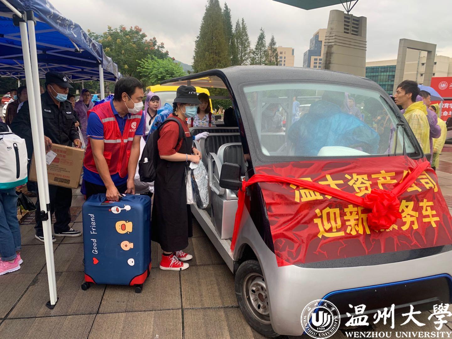 今天是日本a片 2020级新生报道的第一天,在该校南校区东门,从校门口到宿舍楼的校园道路上,温大教师党员志愿者们的爱心服务车载着满满的行李穿梭其间,成为一道独特风景。