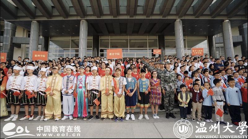 1000多名温大师生及附属学校的小学生,自发报名参加升旗仪式,不少少数民族同学还穿上民族服装致敬祖国!