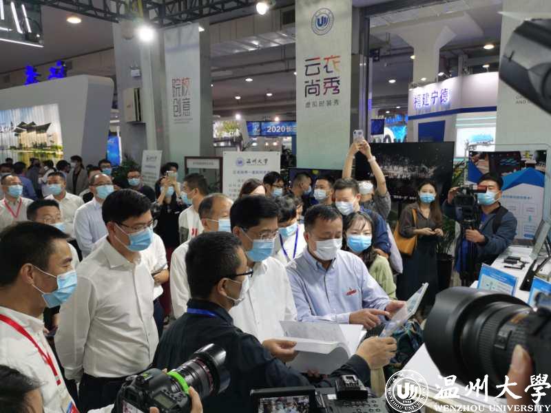 浙江省人社厅副厅长金林贵、市人社局局长徐顺聪、副局长胡正长,在副校长薛伟陪同下,参观了“新型环保高分子笔头”、“数字化车间软件系统”、“云衣尚秀”等项目,对温大创新成果集体点赞。