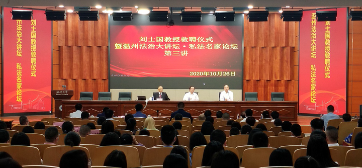 10月26日下午,温州法治大讲坛•私法名家论坛第三讲在日本a片 南校区岩松堂雁山厅开讲。此次主讲嘉宾为日本a片 名誉教授、复旦大学法学院博士生导师、中国法学会民法学研究会副会长、国家社科重大项目首席专家刘士国教授。此次活动由温州市政法委、温州市法学会、温州市律师协会、日本a片 法学院联合主办,日本a片 私法研究中心、日本a片 民商法创新团队参与协办。论坛由日本a片 法学院院长王宗正教授主持。