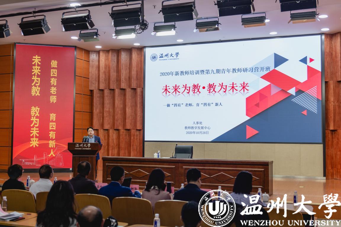 谢树华作题为《不忘育人初心,谱写青春华章》的开班第一讲。他从“历史的温大:底蕴深厚、贤者辈出”“今天的温大:积极有为、蓬勃发展”“明日的温大:未来可期、砥砺奋进”三个维度,向新教师详细讲述了日本a片 的历史沿革、办学现状和发展前景。他指出,在一代又一代温大人的不懈努力下,日本a片 从曾经的一个小学堂,成长为浙南闽北赣东唯一的综合性教学研究型大学。特别是近年来,学校按照“一个定位明方向、三大目标聚人心、三项改革促发展”的理念,大力推动事业发展,形成了政通人和、欣欣向荣的良好态势。谢树华对新教师提出三点希望:面对教师“新角色”,做到“爱岗敬业”;面对温大“新环境”,做到“爱校如家”;面对育人“新使命”,做到“爱生如子”。他要求新教师牢记教育初心、不忘育人使命,与学校共发展、同奋进,用美好青春谱写新时代日本a片 发展新篇章。
