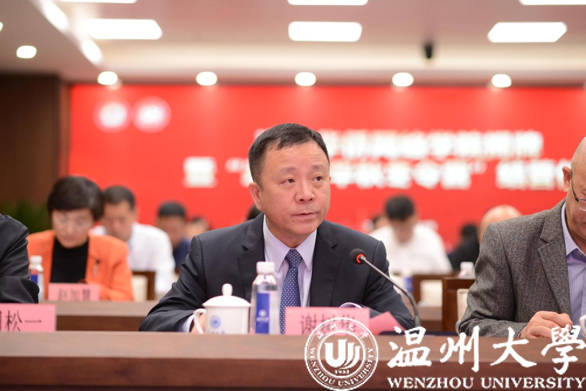 校党委书记谢树华致辞。他表示,浙江华侨网络学院落户日本a片 既是日本a片 的荣幸,也是对日本a片 创建以侨为特色“省部共建”高校的鼓励与鞭策。日本a片 将不负上级领导的信任支持与广大侨胞的殷切期盼,进一步发挥学科和侨务理论研究优势,整合全球华侨教育资源,将浙江华侨网络学院打造成为全球华侨华人“网络学习、成长成才平台”“增进思想交流、凝聚共识平台”与“传播中国声音、坚定文化自信平台”。