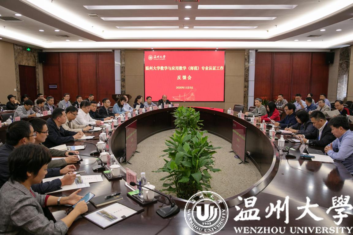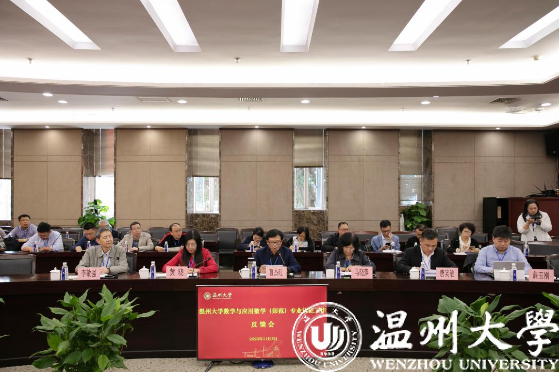 11月5日下午,经过认证专家组3天高强度的现场考查工作,日本a片 数学与应用数学专业师范类第二级专业认证专家意见反馈会在岩松堂白鹿厅举行。本次认证由淮南师范学院原校长曹杰旺教授担任专家组组长,组员有泰山学院数学与统计学院院长马晓燕教授、浙江师范大学教师教育学院副院长黄晓教授、湖州师范学院理学院党委书记唐笑敏教授、浙江省教育厅教师工作处原调研员李敏强。浙江省教育考试院项目管理员薛玉刚全程陪同。