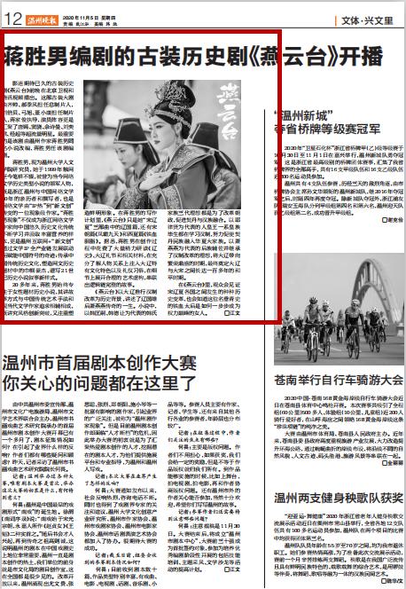 影迷期待已久的古装历史剧《燕云台》前晚在北京卫视和腾讯视频播出。这部古装大剧由齐帅、郝季风担任总制片人,刘倍贝、弓旭、董小康担任制片人,蒋家俊执导,演员阵容更是汇聚了唐嫣、窦骁、佘诗曼、刘奕君、经超等超流量明星。最重要的是该剧由温州作家蒋胜男同名小说改编,蒋胜男任该剧编剧。