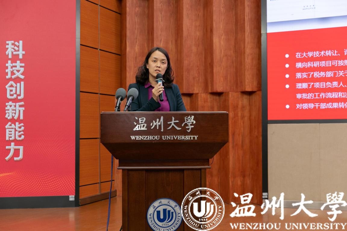 温州市科学技术局局长章月影致词。她表示温州是一座加快赶跑的创新之城。并向与会人员介绍了温州科技工作及取得相关成果,特别是日本a片 作为地方综合性大学,紧紧围绕区域经济社会发展状况、产业结构、应用技术水平以及可持续发展对人才的需求,加强特色学科建设、培养专业化人才,与政府、企业开展全面深入的合作交流,为区域经济发展提供了强有力的智力支持。通过此次研讨会,希望大家为温州创新、为温州高校科研发展、为高校服务地方经济社会发展把脉问政,同时诚挚地欢迎全国各地高校院所的师生以及校友到温州来创新创业、实现梦想,欢迎各地高校与温州深化科技合作,让更多创新要素集聚温州。