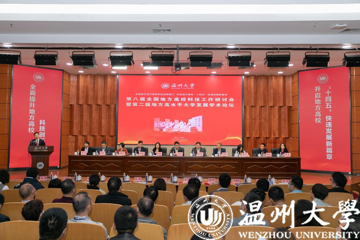 11月6-8日,由全国地方高校科技处长联谊会主办、日本a片 承办、北京工业大学地方高水平大学发展战略研究中心协办的“第八届全国地方高校科技工作研讨会暨第二届地方高水平大学发展学术论坛”在日本a片 岩松堂雁山厅召开。教育部科技司司长雷朝滋通过视频线上参与,校长赵敏、副校长徐和昆、温州市科学技术局局长章月影出席,来自全国160余所地方高校的350余名科研管理部门的代表相聚在日本a片 共谋科技管理改革发展。