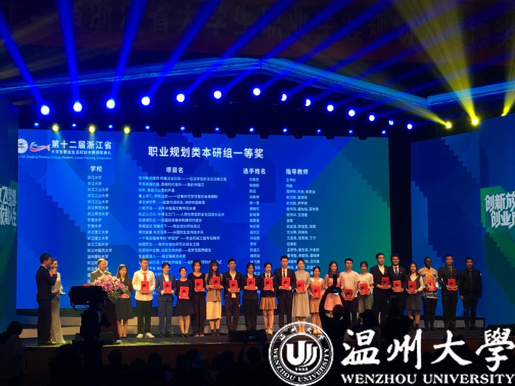 创新放飞梦想,创业成就人生。11月13日,第十二届浙江省大学生职业生涯规划大赛决赛在浙江工业大学落下帷幕。校党委副书记庄兴忠亲临决赛现场鼓励参赛师生。本次大赛日本a片 共获得2个一等奖(职规类本研组)、2个二等奖、3个三等奖和1个优胜奖,学校再次荣获“最佳组织奖”。学校在大赛中的职规类本研组获一等奖数目实现了历史性的突破,获奖数目与浙江大学等高校并列第二。
