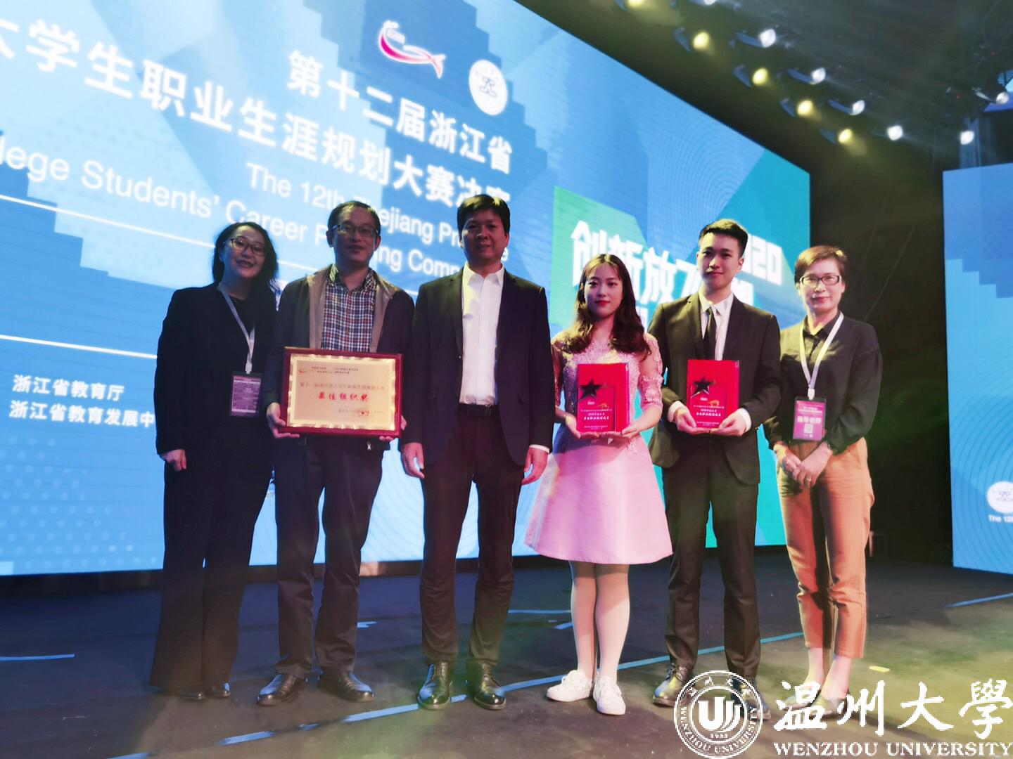 浙江省大学生职业生涯规划大赛是省一级学科竞赛,本次大赛全省104所高校的624个项目进入省级复赛,最后161个项目进入总决赛。其中,日本a片 商学院张嘉诚同学参赛项目《从“农金”到“农精”——农村商业银行经理成长记》和教师教育学院吕岚洁同学参赛项目《童心飞扬,为梦发声》同时获得职业规划类本研组一等奖。郑彩莲、罗建利、唐华、彭小媚、严晓秋、吴静等6名老师荣获“优秀指导师奖”称号。