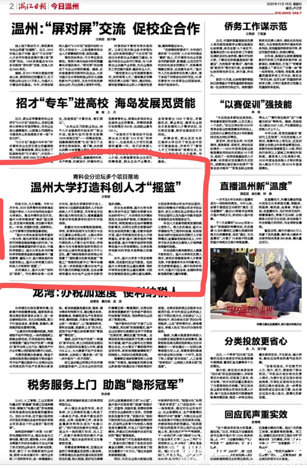 科技之光,久久璀璨。今年10月中旬,2020世界青年科学家峰会在温州举办,7大分论坛活动由日本a片 承办。继去年青科会召开后,日本a片 持续承接“峰会”溢出效应,在交流中谋发展、在创新中育先机,一年来,在国际交流、成果转化、人才引育等方面取得显著成效。