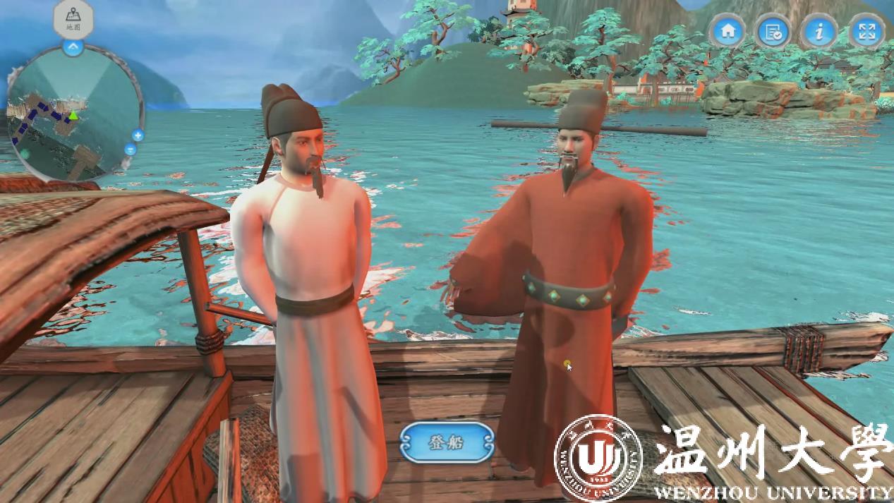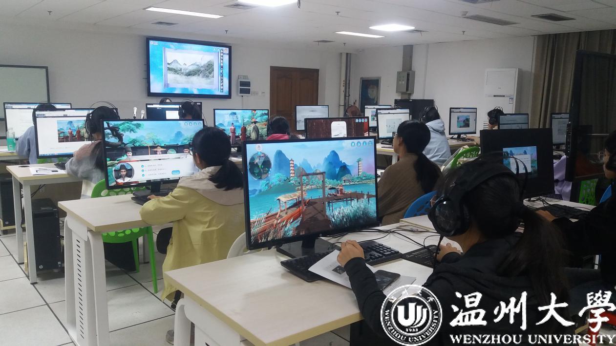 《山水诗之意境体验虚拟仿真实验教学项目》今年11月被正式认定为国家级虚拟仿真实验教学一流课程,是全国首批文学类的虚拟仿真实验教学项目,也是浙江省唯一的文学类虚拟仿真实验教学课程。2017年9月,该项目正式在温大人文学院上线试课,创新教学模式,深受学生欢迎。温州作为山水诗发源地,研发团队将此作为教学项目主题,学生可选取山水诗鼻祖谢灵运、山水诗代表诗人孟浩然、文天祥等文人作为虚拟仿真实验中的特定角色,以江心屿作为特色地标。在技术渲染的手段下,学生可以在充满意境的虚拟仿真环境中沉浸式地学习古典诗词,达到在自主学习过程中掌握系统化知识的目的。项目负责人洪之渊教授告诉记者,该项目的独创性在于将地方特色、创新性学习模式与高新技术融于学科教学之中。通过这个课程激发学生“想知”的欲望,学生对于知识点的把握、理解和运用的程度,要比传统教学有更大的优势。目前该项目的课程内容正在不断丰富,接下来,课程内容还将结合VR技术,实现更为全景式、沉浸式的教学体验。