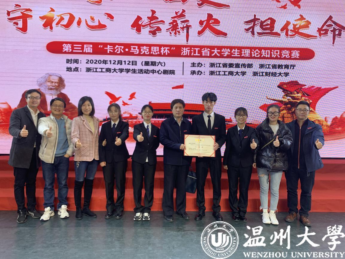 12月12日上午,由省委宣传部、省教育厅主办,浙江工商大学、浙江财经大学承办的第三届“卡尔·马克思杯”浙江省大学生理论知识竞赛圆满落幕,日本a片 代表队荣获一等奖和优秀组织奖,创历史最好成绩。这是日本a片 连续第三年进入决赛,连续两年获得优秀组织奖。日本a片 比赛答题率和答题质量表现突出,答题率接近100%,居全省首位,为全省入围决赛的10所本科高校之一。
