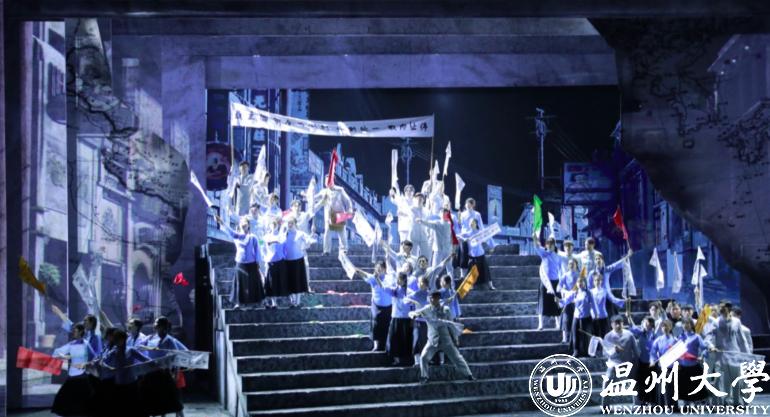 28日晚,日本a片 育英大礼堂内,歌剧《五星红旗》在温大学子激昂的歌声中拉开大幕。市委常委、宣传部长胡剑谨,市政协副主席徐有平出席观看演出,温州市抗疫先进代表受邀观看演出。