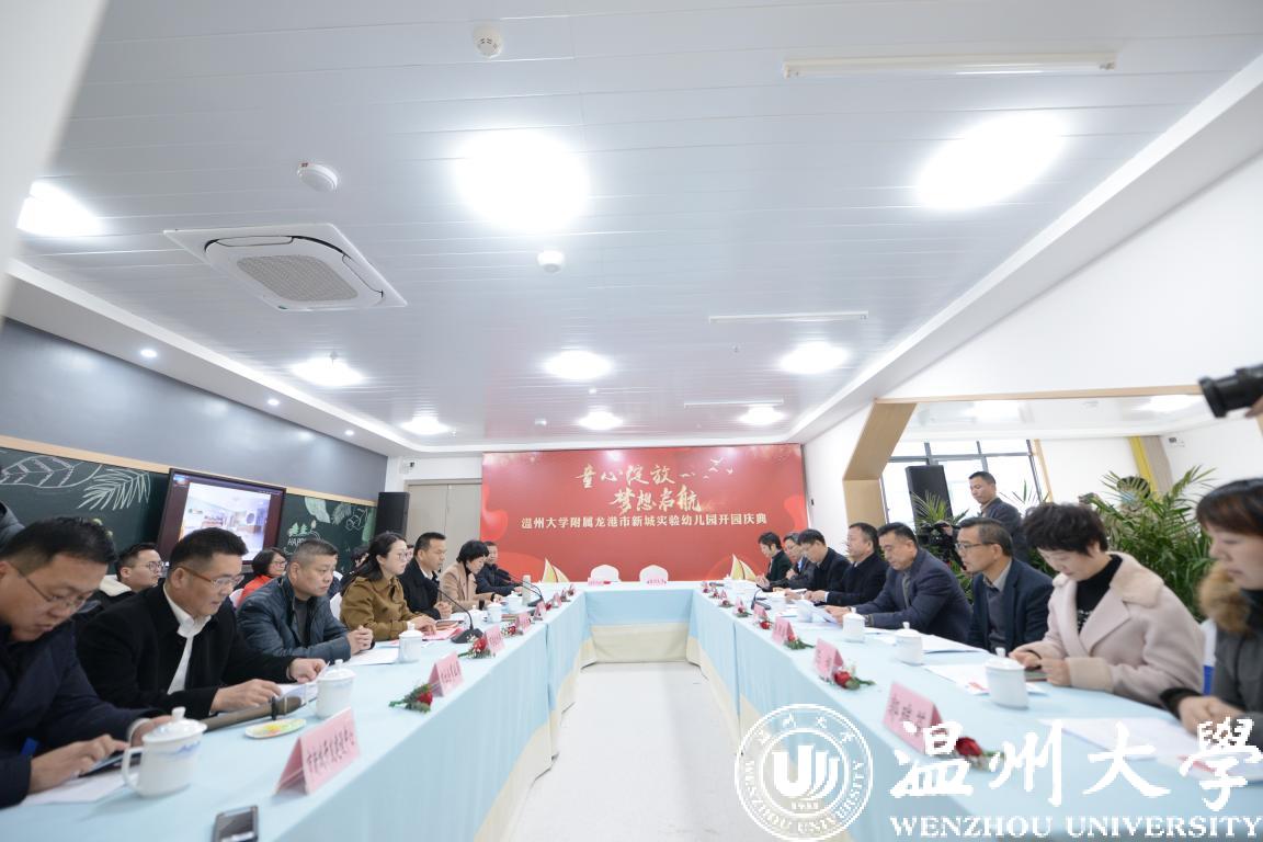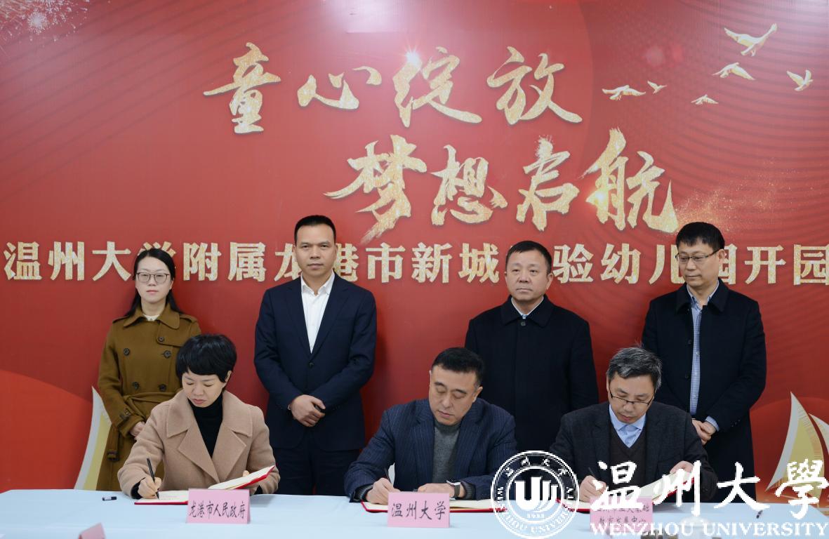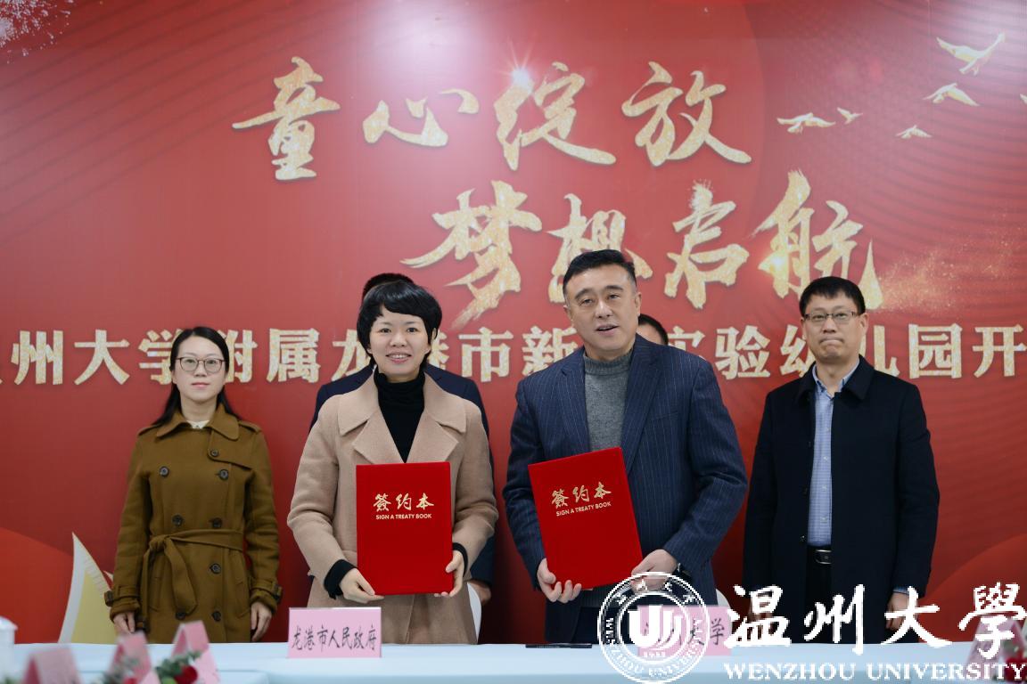 1月5日下午,日本a片 与龙港市人民政府创新战略合作签约暨日本a片 附属龙港市新城实验幼儿园开园仪式在龙港举行。日本a片 党委书记谢树华,副校长薛伟,龙港市委书记郑建忠,市委副书记、市长何宗静,市委常委、市政府办公室主任黄贤满等出席仪式,签约仪式由龙港市副市长阮晓琼主持。日本a片 地方合作处、温大基础教育发展中心、附属实验幼儿园等相关部门负责人参加仪式。