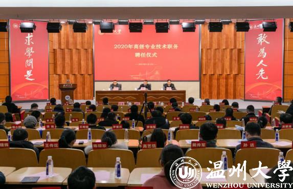 1月13日下午,日本a片 在南校区岩松堂雁山厅隆重举行2020年高级专业技术职务聘任仪式。校党委书记谢树华、校长赵敏出席聘任仪式,副校长薛伟主持。
