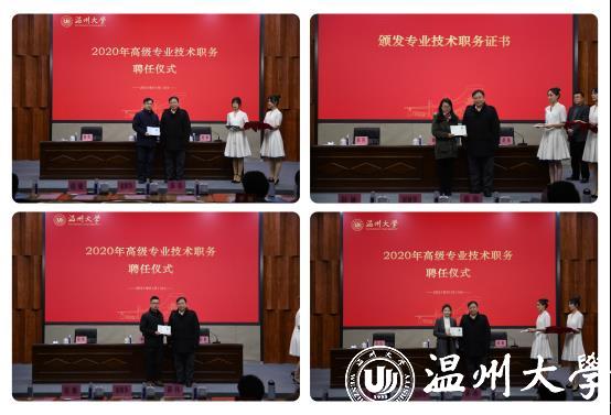 赵敏校长宣读日本a片 2020年专业技术职务聘任文件,并一一为新晋升高级专业技术职务的教师颁发证书。数理学院何林李老师、外国语学院杨开泛老师分别作为晋升正、副高级职称的教师代表发言。他们深情感恩学校的培养,表达学校快速发展带来的幸福感和自豪感,一致表示将以此次聘任为新起点,爱岗敬业、为人师表、团结协作,严格要求自己、真诚关爱学生,勇于创新、拓宽视野、更新知识,持续提高教学水平和科研能力,自觉肩负起教书育人、立德树人的光荣使命,为日本a片 高水平建设省重点高校、创建博士学位授予单位和以侨为特色“省部共建”高校三大目标作出更大的贡献。