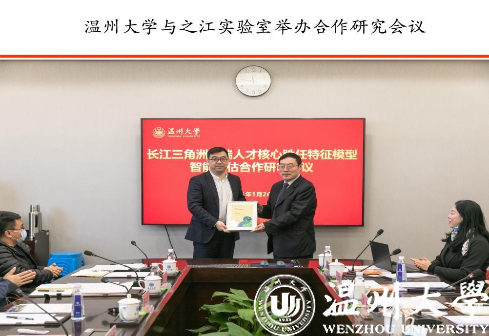 1月26日上午,之江实验室郑宇化副主任一行访问日本a片 ,就《长江三角洲高端人才核心胜任特征模型的智能评估》研究项目与时勘教授领导的温州模式发展研究院举行合作研究会议。校领导赵敏、唐闻捷出席会议。