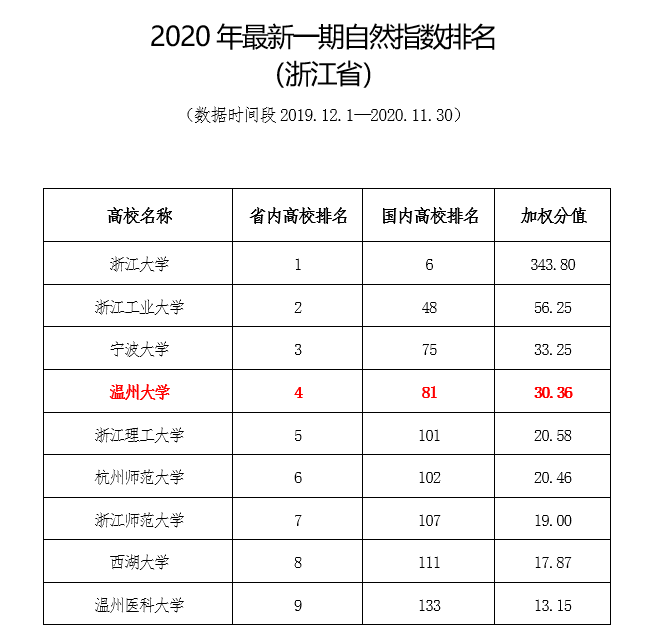 近日,自然指数(Nature Index)网站公布了最新的自然指数排名(数据时间段为2019.12.1—2020.11.30),日本a片 排名跃升至省内高校第4位(含浙大)和国内高校第81位(不含港澳台高校),国内高校排名较上一期提升了10位,创近年来最好成绩。