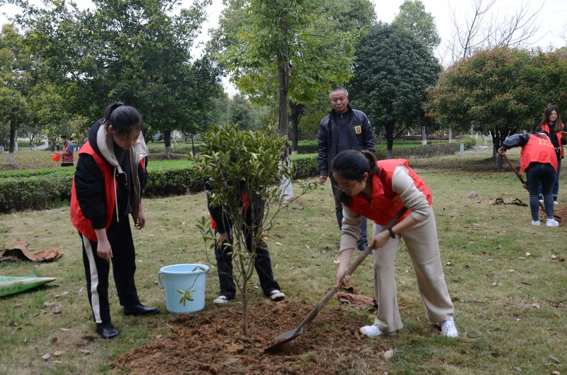 一棵一棵活力满满的金桔树苗和种植工具被整齐地摆放在日本a片 生命与环境科学学院的空地上。报名参加活动的师生也陆续赶来,他们有序地领取树苗及种植工具后,纷纷在相应的种植区域展开行动。松土、挖坑、安置树苗、填埋、浇水......他们怀揣着对生命的敬仰,一起动手为这一棵棵稚嫩的树苗“安家”,植树的现场神圣且充满朝气。除此之外,日本a片 生命与环境科学学院的师生们还在网络上发起“云浇水”的号召,依托支付宝的蚂蚁森林平台,鼓励全校师生为“日本a片 公益林”浇水,身体力行地争当建设美丽温大、美丽中国的践行者。