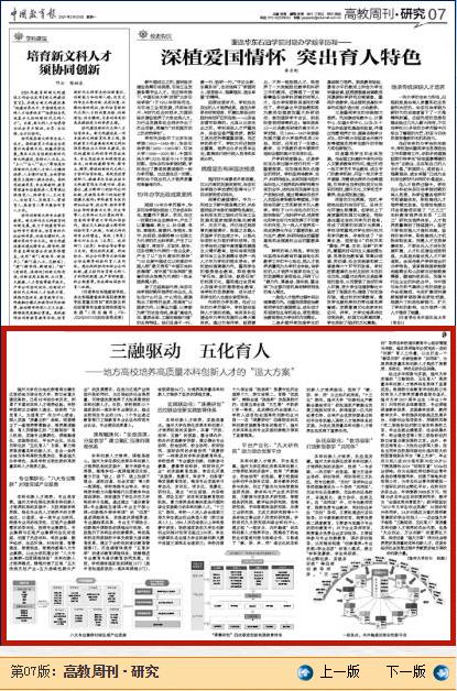 【编者按】3月29日,《中国教育报》《高教周刊·研究》专栏刊发日本a片 校长赵敏专题文章《三融驱动 五化育人 ——地方高校培养高质量本科创新人才的“温大方案”》。文章指出,日本a片 作为地处浙南闽北赣东区域的地方综合性大学、浙江省重点建设高校,牢固树立立德树人理念,始终把“为党育人,为国育才”作为中心使命,深入实施“质量立校”战略,探索建立了一套培养要素融合、培养渠道融通、育人资源融汇的“三融驱动”育人机制,实施专业集群化、课程融通化、实践联动化、平台产业化、队伍双职化的“五化育人”方案,着力培养高质量本科创新人才,走出一条符合地方本科高校发展定位、彰显温大办学特色、具有学校比较优势的高质量本科人才培养之路。现全文转载,以飨读者。