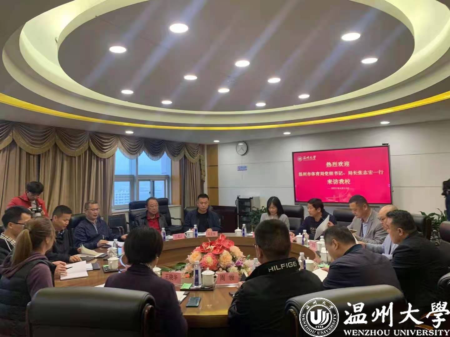 4月13日,温州市体育局党组书记、局长张志宏一行来访日本a片 推进龙舟学院筹建事宜。中国龙舟协会副主席、浙江省龙舟协会主席王成云,副校长薛伟出席会议。