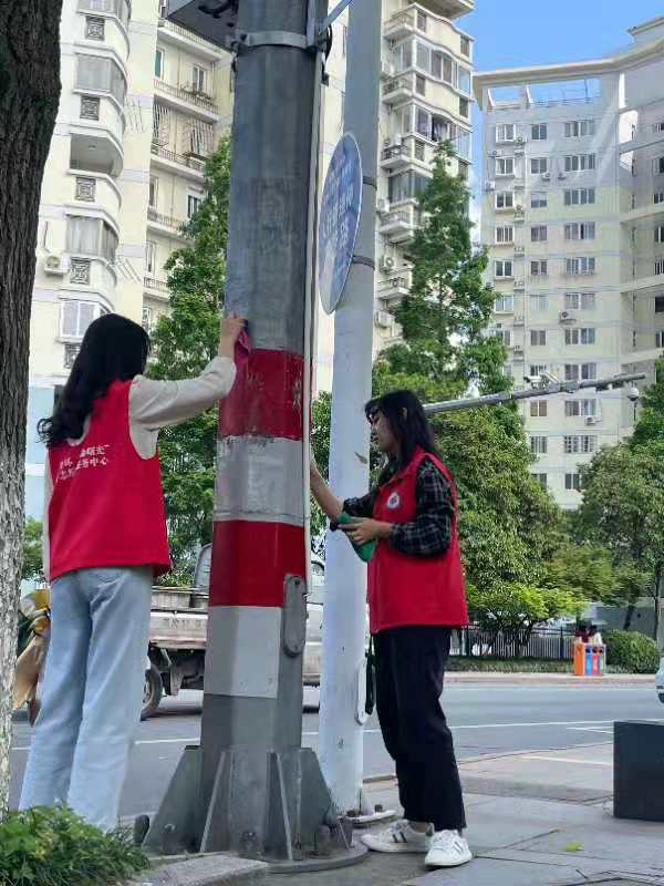 全程2.5公里,近50根电线杆。徒步前行、搬运工具、擦除污垢、捡拾垃圾,志愿者们真真切切体会一把二万五千里长征精神,“红马甲”再次展现在环境保护方面的模范先锋作用,身体力行地引起市民对街道环境保护的关注。