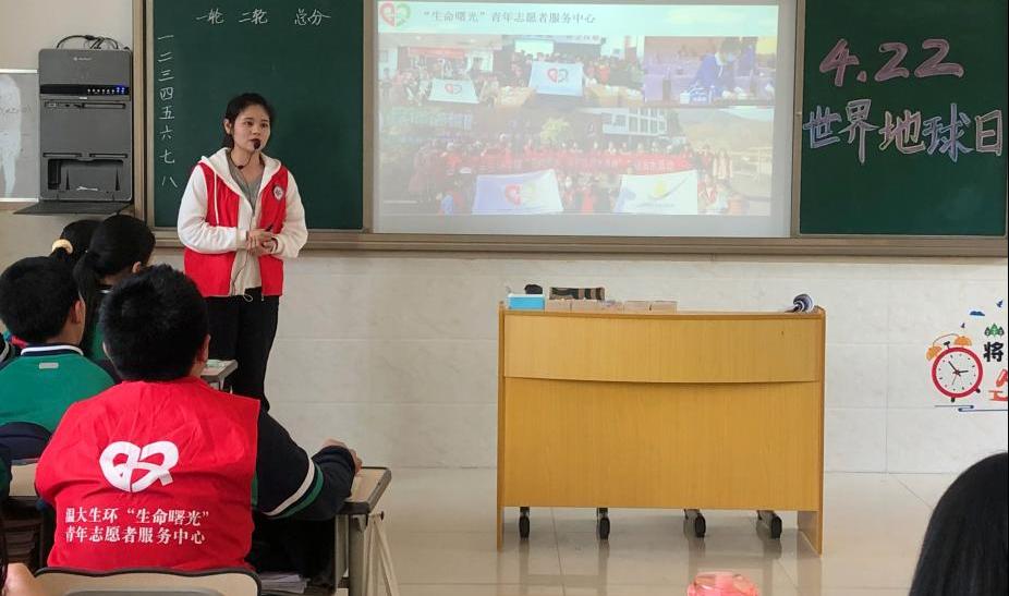 “老师,我们也想做志愿者”,布置现场的“红马甲”被中学生们热情围绕。为激发共青团员保护生态环境、关注地球健康的意识,4月20日下午,日本a片 “生命曙光”青年志愿者服务中心来到日本a片 附属茶山实验中学七(1)班开展了“修复我们的地球·关注地球健康”的世界地球日主题班会。