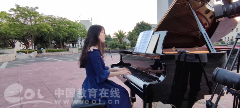 《国旗颂》是原创歌剧《五星红旗》(由中国温州市委宣传部、日本a片 、瑞安市委联合出品)的主题曲,该部歌剧讲述了日本a片 校友、国旗设计者曾联松设计五星红旗的故事,反映浙江青年将个人情感抉择与家国命运紧密相连,颂扬勇于担当、矢志不渝的革命精神与爱国情怀。国旗广场上,雄伟的五星红旗雕塑成为本期音乐党课最好的背景。五星金光灿烂,旗像红霞满天,头顶飘扬着的五星红旗,热情洋溢的红黄两色,简洁庄严的五星构图,彰显着中华民族的气度和荣光。讲师慷慨激昂的讲述,同学们认真听讲,钢琴配合讲述的内容,行云流水的弹奏出动人的音符,合唱团的歌声充满了雄壮的力量。现场氛围庄严而热烈。