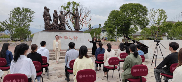 “红岩上红梅开,千里冰霜脚下踩,三九严寒何所惧,一片丹心向阳开向阳开……”近日,日本a片 首期“音乐党课”在瓯海区仙岩街道浙南一大会址前正式开讲,音乐学院教工第一党支部书记张潇潇博士以“讲、演、奏、唱”一体化的全新方式为学生党员生动诠释了《红梅赞——征程岁月中英勇不屈的革命之花》。张潇潇由“浙南火种”的红色背景引入,讲述了江姐、林心平等一代革命先烈英勇不屈的革命事迹,嘹亮的歌声回荡在浙南一大会址上空。充满艺术美的“音乐党课”不仅令上课的学生党员动容,现场驻足观看的居民也深受感动、交口称赞。