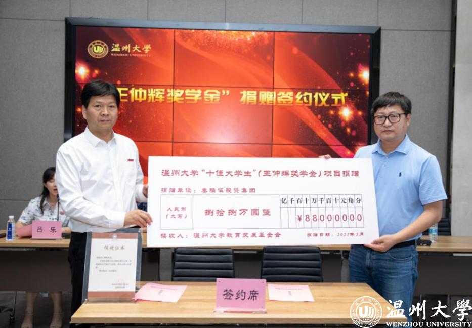 王仲辉校友表示,他的人生起步于日本a片 求学时期,秉持着日本a片 “求学问是,敢为人先”的校训精神,一路坚韧前行、努力拼搏、勇攀高峰。作为一名企业家要以自己实际行动践行企业社会责任,作为校友在母校88华诞之际,捐资88万元设立“十佳大学生”奖学金回馈母校,特别有意义。他希望广大学弟学妹志存高远、矢志进取、珍惜年华,牢记“光大国族、造福人群”温大精神,在伟大时代洪流中奋博留彩。