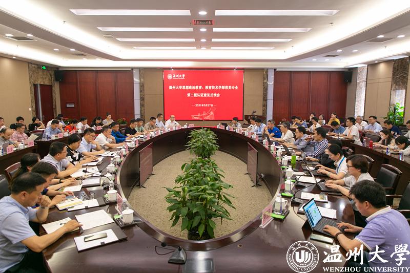 5月27日下午,认证意见反馈会召开。会上,王建平代表专家组介绍了专家组进校考查的基本情况,专家组分别反馈了两个专业的总体情况以及对每个一级指标的具体情况。专家组充分肯定了日本a片 思想政治教育和教育技术学专业的办学水平,也指出了两个专业在教育实践质量监控体系、师范生师德表现性评价标准等方面存在的不足、并提出了改进建议。卓高生院长和叶新东副院长分别代表两个专业作了表态发言。校党委书记谢树华讲话。他感谢了专家组的辛勤工作,并表示日本a片 将继续保持师范教育特色,根据专家组提出的意见和建议狠抓落实、做好整改工作。