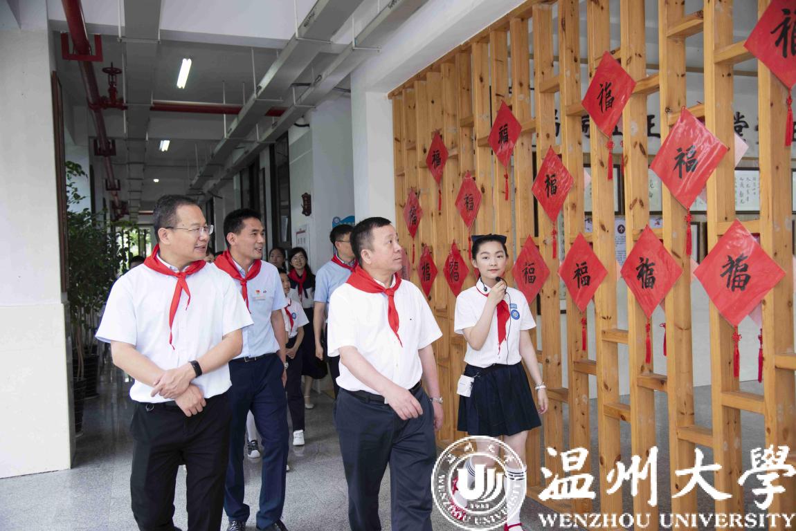 校长赵敏一行先后来到日本a片 附属第一实验小学与日本a片 附属滨海幼儿园,实地察看校园教学设施和活动环境,并为孩子们送上节日问候与礼物。在日本a片 附属第一实验小学,赵敏一行欣赏了温大附小的孩子们精心准备的“童心向党·筑梦六一”节目演出,他对温大附小学子们的多才多艺给予了高度赞赏。