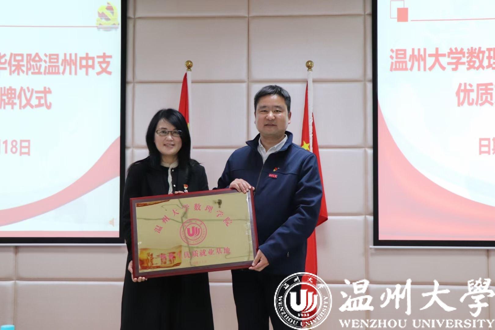 为促进高校毕业生就业工作,数理学院还与新华保险温州中支共建毕业生优质就业基地,向新华保险温州中支授予“毕业生优质就业基地”牌匾,以共同培养优秀的学生和员工,实现校企双赢。据新华保险温州中支党支部书记陈菊妫介绍,该公司为数理学院毕业生打通招聘渠道,有意向竞聘的毕业生可优先面试。温州市政府殷市长调研新华保险温州中支时充分肯定与表扬了日本a片 数理学院与新华保险温州中支通过党建共建,建立优质就业基地助力毕业生留温留浙工作这一举措。