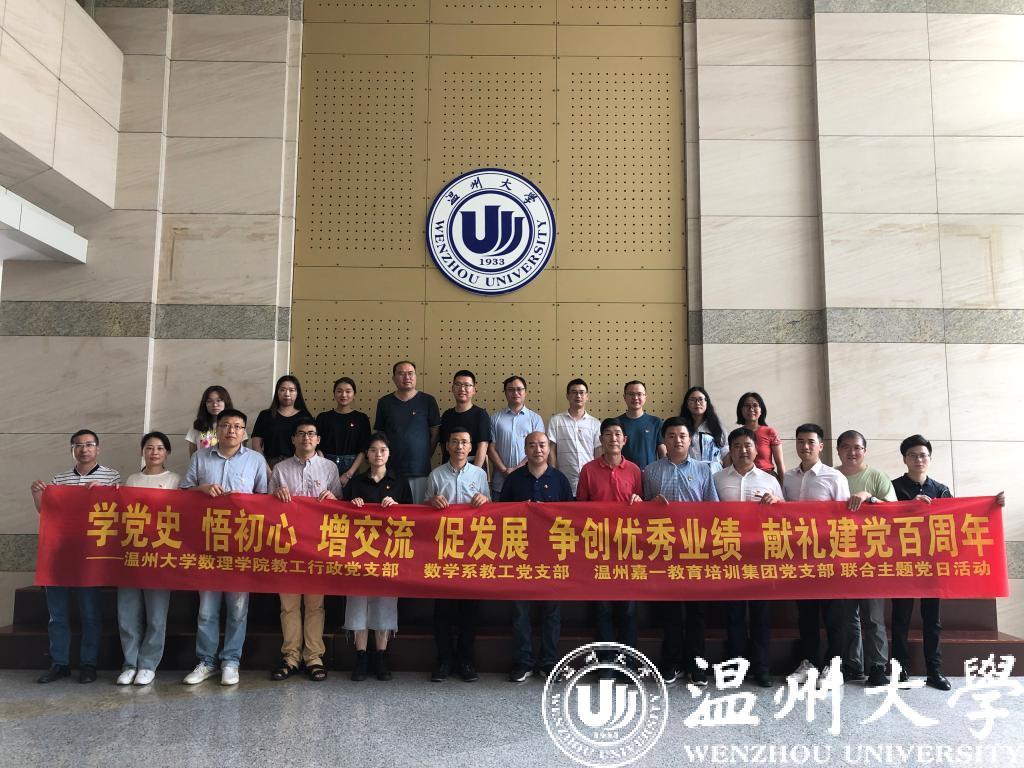 毕业季临近,为积极帮助毕业生顺利就业,努力提升毕业生的留温率, 6月2日下午,日本a片 数理学院教工行政党支部、数学系教工党支部、温州嘉一教育培训集团党支部,联合举办了一场“学党史、悟初心、办实事、解难题、增交流、促发展”的主题党日活动。校地三个党支部联合举办主题党日活动来推动解决工作中的难题,也是新数理学院成立以来的首次。