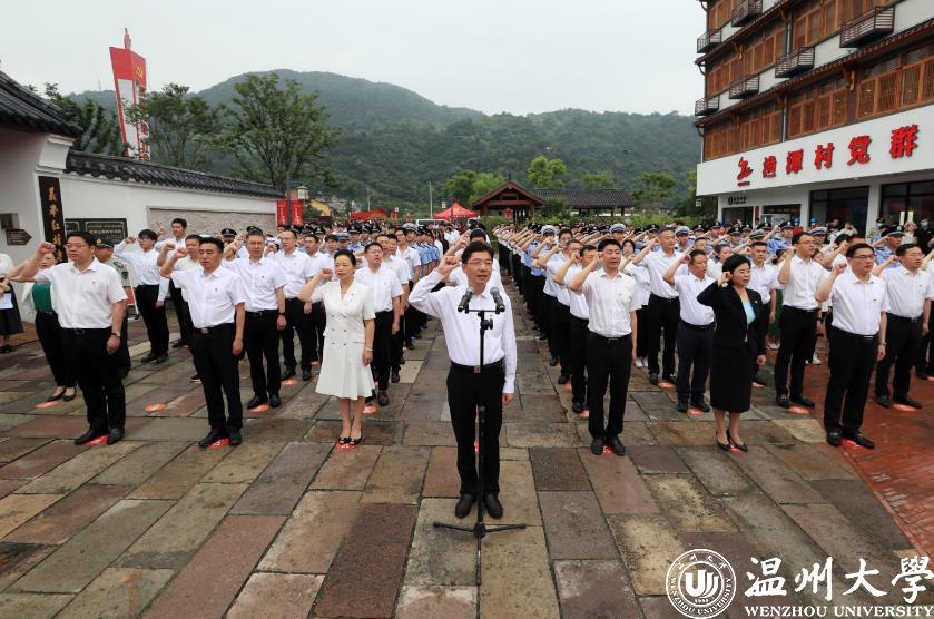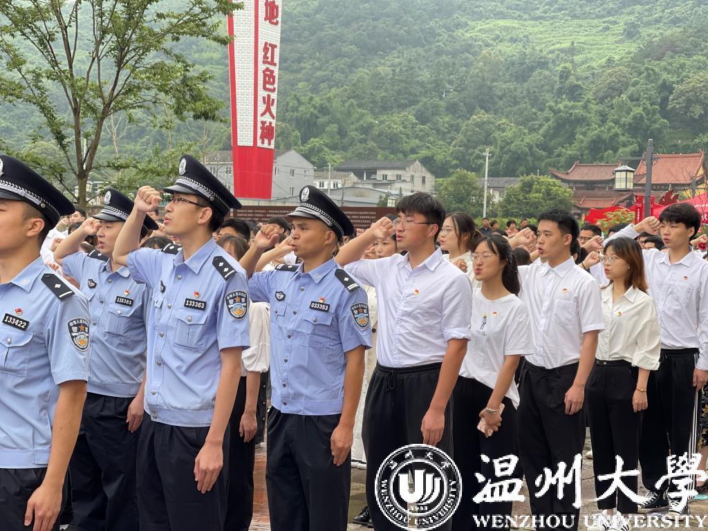 作为高校单位,日本a片 师生党员21人在主会场瓯海区中共浙南一大会址参加集中宣誓活动。