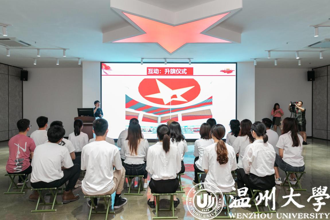 揭牌仪式现场,教师教育学院师生带来了《我和我的祖国》《没有共产党就没有新中国》红歌快闪,体育学院师生热情演绎红色健美操。师生们一起手挥国旗,青春的律动在激昂的旋律中点燃,展示了青年一代的活力向上和对未来的期盼希望。马克思主义学院项淳芳老师在基地现场为师生们带来《五星红旗:我和我的祖国》虚拟仿真思政课,沉浸式情境学习环境给师生们带来了别样的感受,提高了思政课的时代感和吸引力。