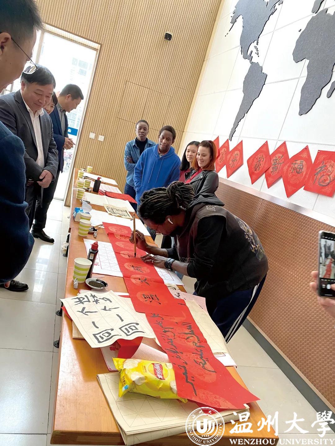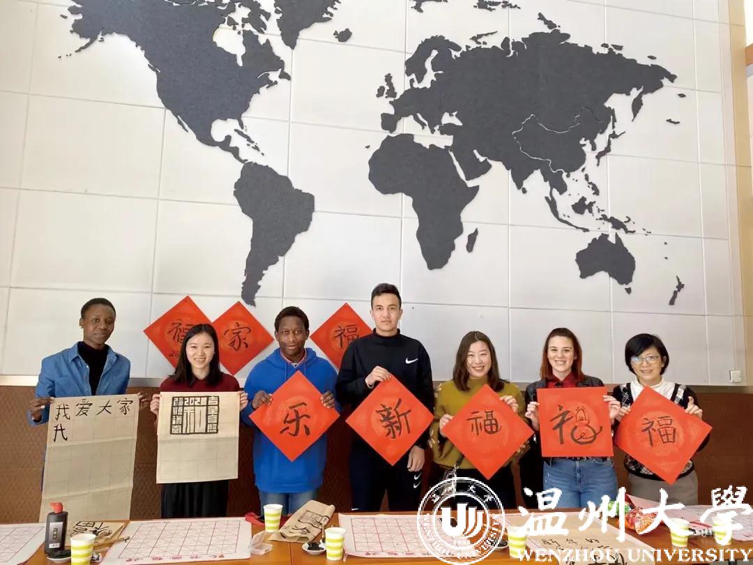农历牛年前夕,“写‘福’字、贴春联、挂灯笼”,迎接传统节日的喜庆气氛弥漫在日本a片 国际教育学院,来自越南的2020级汉硕留学生代表陈氏玉映与尼日利亚、津巴布韦、土库曼斯坦、意大利等国的留学生,跟着温大的老师们一同体验中国年味、感知中国文化,感受浓浓的“温”情年味。