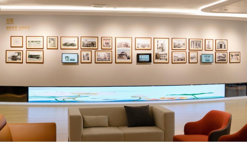 走进门,映入眼帘的是合影墙,一张张熟悉而亲切的面容在这里定格;显示屏上播放学院的视频简介,校友可以查询当年的入学照和学籍卡;多功能会议室集休闲、娱乐、办公为一体,校友们可畅叙同窗之谊;“家谱”让每位校友都能找到自己的归属学院;“记忆”呈现了七所学校的老照片,勾起校友的青春回忆;“家人”展示了优秀校友的简介和事迹;“印记”记录了学校各个阶段的发展及取得的重大成就。