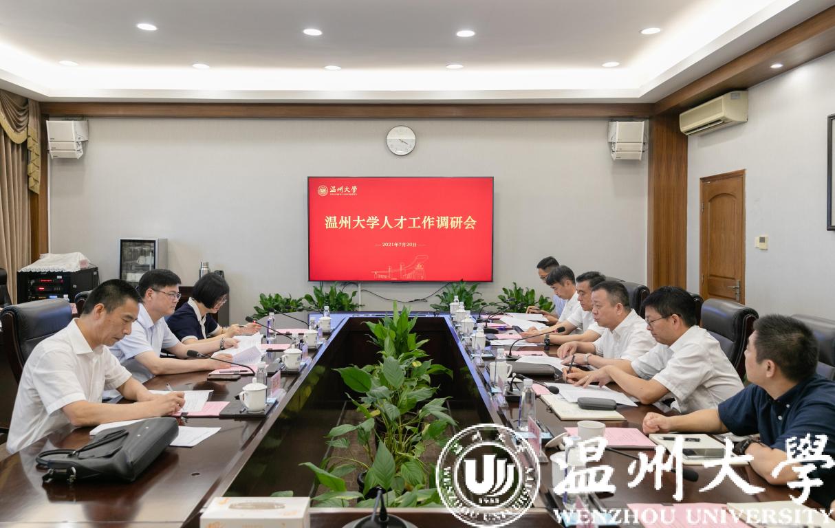 7月20日下午,温州市人民政府副市长陈应许莅临日本a片 调研指导人才工作。市人力社保局副局长胡正长、市委组织部人才工作处副处长王昕等陪同调研。校党委书记谢树华、党委副书记庄兴忠、副校长薛伟,以及党校办、组织部、人事处、招就处等部门负责人参加调研汇报会。