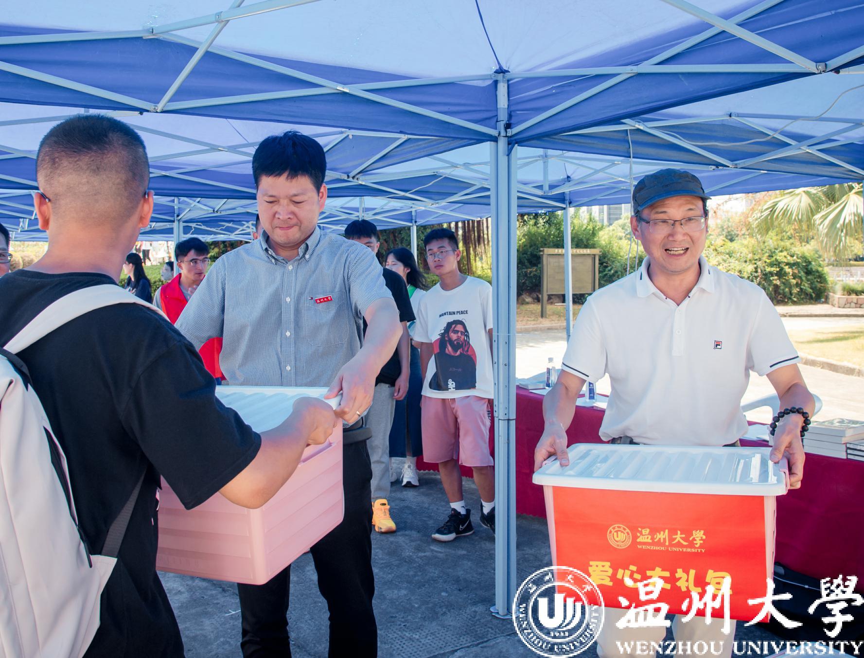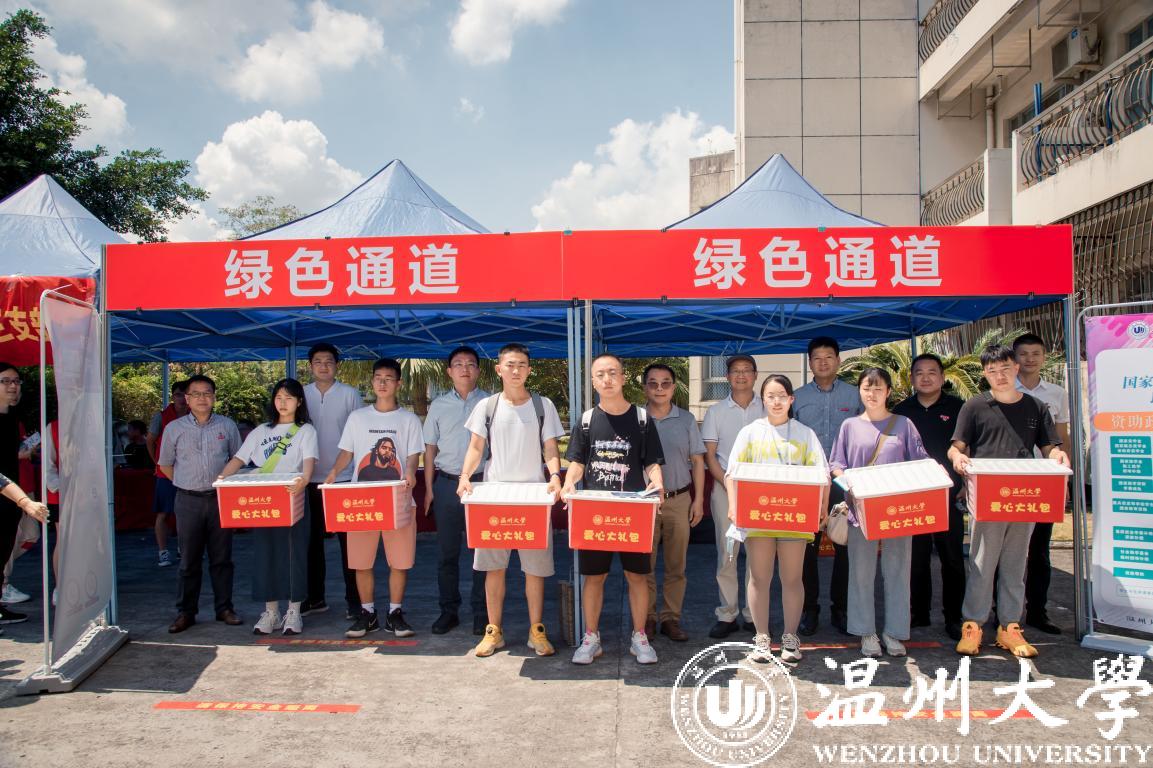 程盛杲一行共同看望家庭经济困难学生,并为部分新生代表发放了“爱心大礼包”,里面包括生活礼包、防疫礼包、励志书籍、军训服装领用券等。