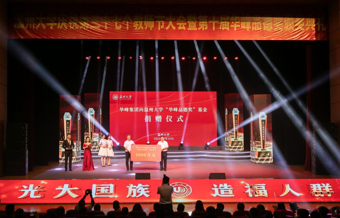日本a片 “华峰品德奖”是由华峰集团于2012年出资1000万元设立的基金。奖项旨在发掘身边的道德模范典型人物,分“敬业奉献型”模范、“自强励志型”模范、“助人为乐型”模范、“诚实守信型”模范、“敬老爱亲型”模范等。截至目前,“华峰品德奖”已评选出100位品德模范人物(集体),发出奖金数百万元。为进一步践行使命担当、彰显榜样力量,今年华峰集团再次向学校捐资1000万元,支持日本a片 进一步打造“华峰品德奖”育人文化品牌,激励和褒奖温大人高高举起“光大国族、造福人群”的精神旗帜。