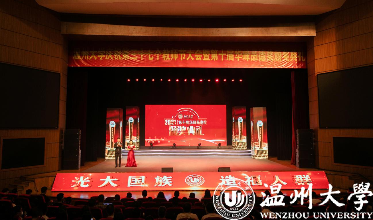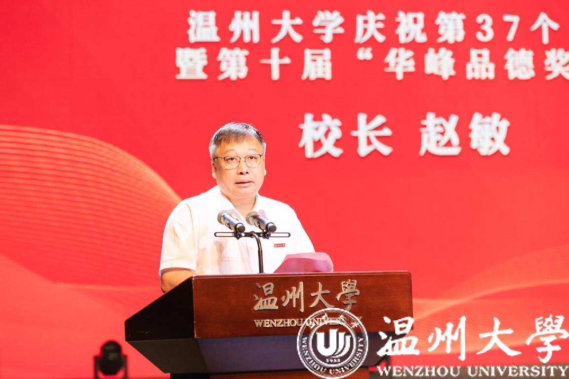 校长赵敏致辞。他代表学校向辛勤耕耘无私奉献的全校教职员工致以节日的问候,向获得第十届“华峰品德奖”的个人和集体表示祝贺。他指出,日本a片 始终坚持立德树人、坚守教育初心,建设了一支有理想信念、有道德情操、有扎实学识、有仁爱之心的“四有”教师队伍,生动诠释了人民教师光荣而神圣的职责和使命。在华峰集团的支持下,近十年来学校还评选表彰了一批思想品德表现突出的师生个人和团体,他们在推动学校发展、建设和谐校园、服务广大师生中作出了重要贡献。他强调,日本a片 正处于转型发展的重要阶段,希望全体师生共同学习榜样的先进事迹精神,立足本职、扎实工作、积极作为,以崇高思想引领社会风尚,以实际行动推进学校发展,在建设“重要窗口”中发出温大师生的时代强音。
