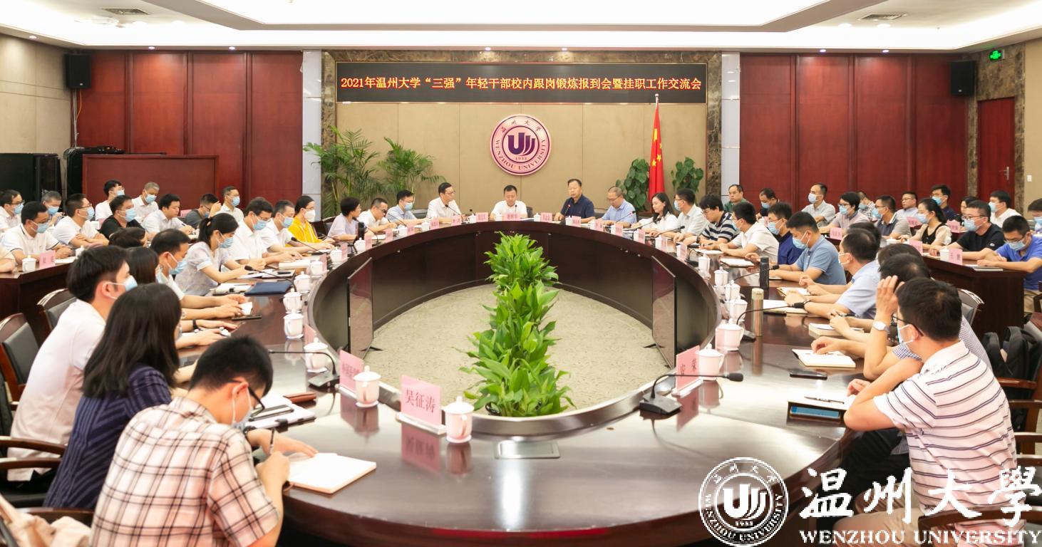 9月26日下午,日本a片 召开2021年“三强”年轻干部校内跟岗锻炼报到会暨挂职工作交流会。校党委书记谢树华,校党委副书记吴金法,校党委委员、组织部部长郑信军出席会议。吴金法主持会议。