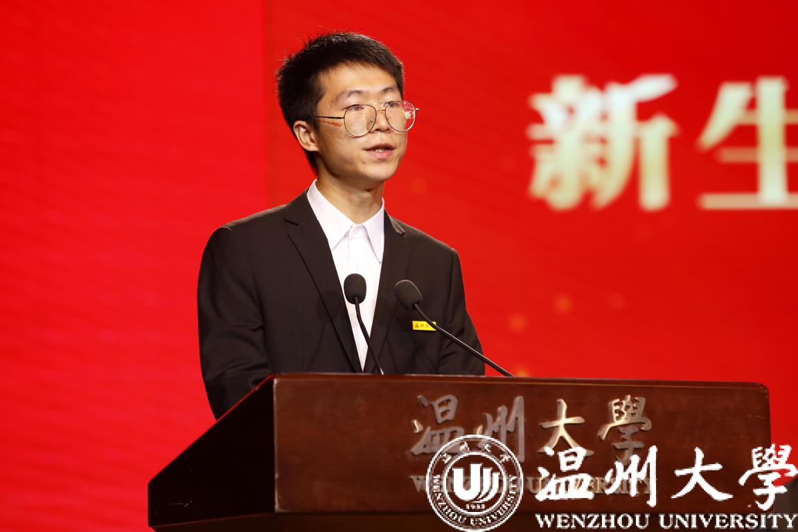 汤文晗同学作为本专科生新生代表发言。她向新生们发出青春号召:“让我们奋斗正青春,做一名心中有梦、眼里有光的温大学子!”
