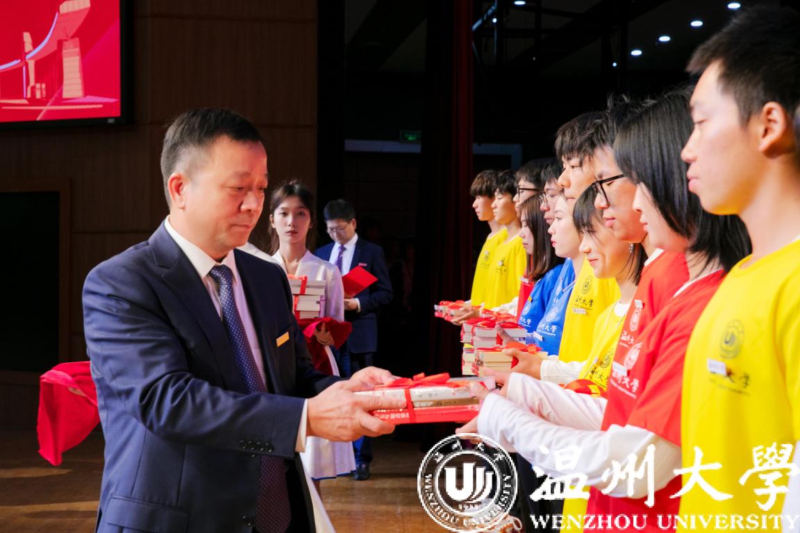 饱读诗书能开阔视野、修身养性。延续日本a片 往年的书香传统,校党委书记谢树华老师为2021级新生代表赠送三本书。其一《神奇的符号》,是著名数学家、日本a片 老校长苏步青先生的自传,希望同学们能够从此书中汲取科学养分、提高科学素养。其二《为什么是中国》,该书解读中国道路、书写中国力量、彰显中国自信,希望同学们从中感悟家国担当、积蓄奋进力量,更加坚定地听党召唤、与党同行、跟党奋斗。其三《习近平的七年知青岁月》,讲述了习近平总书记青年时期扎根黄土高原的青春故事,希望同学们争做堪当民族复兴大任的时代青年。崇尚科学以求真,尊重历史以求实,涵养人文以求善。学校通过赠书仪式,鼓励同学们做到好读乐学、知行合一,努力成为政治素养、专业素养和人文素养相得益彰的栋梁之才。