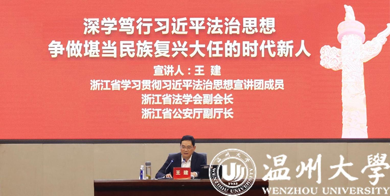 为深入学习贯彻习近平法治思想,11月4日下午,浙江省学习贯彻习近平法治思想宣讲团成员,省法学会副会长,省公安厅党委委员、副厅长、一级警务专员王建莅临日本a片 ,作题为《深学笃行习近平法治思想,争做堪当民族复兴大任的时代新人》的专题辅导报告。全体校领导、中层干部、“三强”年轻干部、辅导员和学生代表参加学习会。 校党委书记谢树华主持。